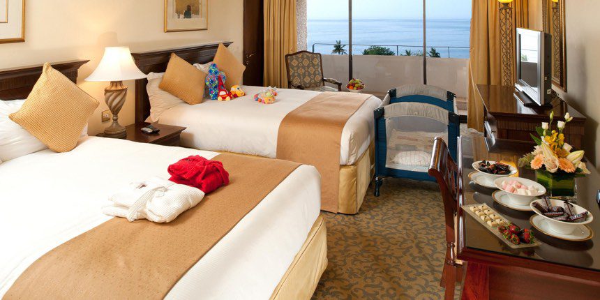 Alle ca. 32 Quadratmeter großen Zimmer verfügen über eine Klimaanlage, Minibar, ein Telefon, Internetzugang, TV und Badezimmer mit Fön. Diese und viele weitere komfortablen Annehmlichkeiten lassen Ihr Zuhause auf Zeit zu einem echten Wohlfühl-Paradies werden. Vom großen Balkon aus genießen Sie einen traumhaften Blick auf das majestätische Hadschar-Gebirge oder die Küste des Golfs von Oman mit ihren feinen Sandstränden und schillerndem Wasser.